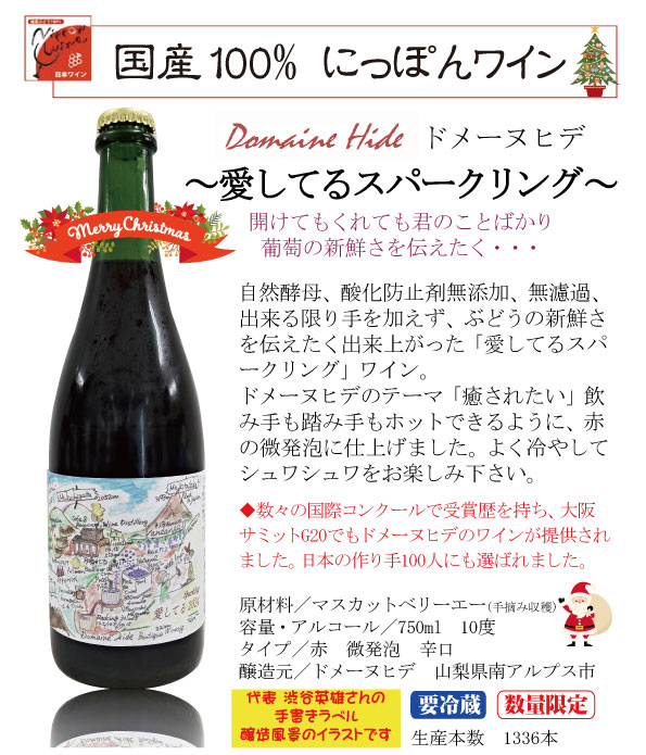 トップ > ◆スパークリングワイン > クリスマス プレゼント2024 ドメーヌ ヒデ 愛してる スパークリングワイン 赤 微発泡 750ml 山梨県 南アルプス 無添加スパークリングワイン
