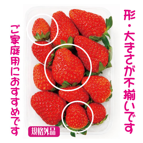 ◆形、大きさが不揃いの、規格外品、訳ありの苺ですのでご家庭用としておすすめです